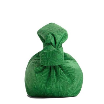 【包税】Bottega Veneta/葆蝶家 21新款DOUBLE KNOT系列 女士鹦鹉绿色织物牛皮革拉链打结手提包658049V0T413711