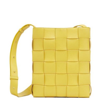 【包稅】Bottega Veneta/葆蝶家21春夏新款CASSETTE系列毛茛黃色小羊皮格紋編織郵差單肩斜挎包649601VMAY17130