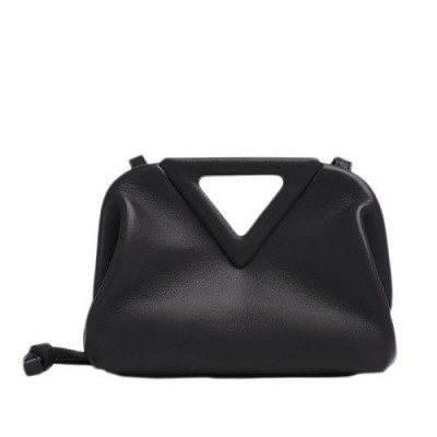 【包稅】Bottega Veneta/葆蝶家21春夏新款POINT系列女士小號黑色小牛皮三角形提手單肩手提包658476VCP401229