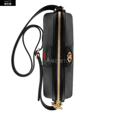 2019早秋系列再添力作,推出全新圆形Ophidia系列肩背包,选用黑色皮革材质,搭配镶嵌的红绿条纹织带细节。新款设计的正面饰片和拉链头上饰有小巧玲珑的双G细节,灵感源自70年代Gucci典藏腰带搭扣设计,经现代美学演绎后演化成高贵小巧的样式,打造备受青睐的造型。