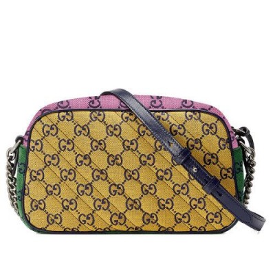 【包税】GUCCI/古驰 2021春夏新款 GG Marmont‎系列 小号女士多色GG帆布拉链银色饰面双G徽标斜挎单肩手提包4476322UZIN6061