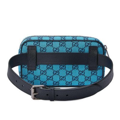 【包税】GUCCI/古驰 2021春夏新款 GG Multicolor系列 男女同款浅蓝色和蓝色GG帆布GG钻石图案腰包‎6586572UZAN4487