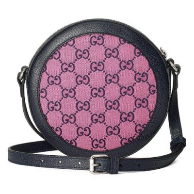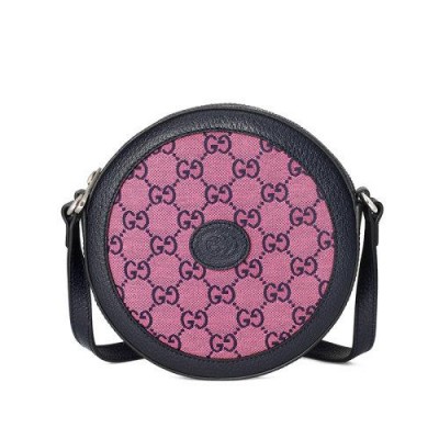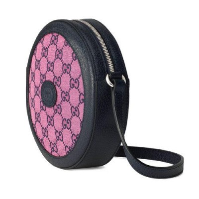 【包稅】GUCCI/古馳2021春夏新款GG Multicolor系列女士粉色和藍色GG帆布可調節肩帶圓形單肩包6588252UZAN5279