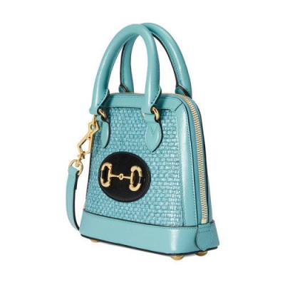 • 【包税】GUCCI/古驰 2021春夏新款 Horsebit 1955系列 女士迷你淡蓝色稻草织物手提斜挎单肩包6407162VAAG4977