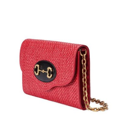 • 【包税】GUCCI/古驰 2021春夏新款 Horsebit 1955系列 女士小号珊瑚草稻草织物单肩斜挎手拿包6556672VAAX6569