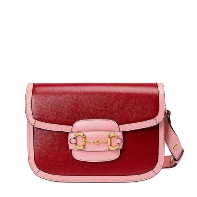 【包稅】GUCCI/古馳2021春夏新款Horsebit 1955系列女士小號紅色和粉色皮革馬銜扣單肩斜挎手提包‎6022041DBAG6668