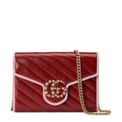【包税】GUCCI/古驰 2021春夏新款 GG Marmont系列 女士红色和粉色皮革双G链式钱包5738071X5EG6476