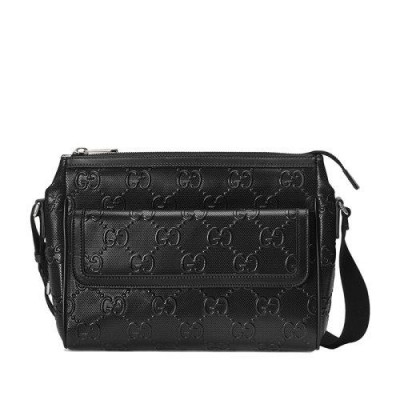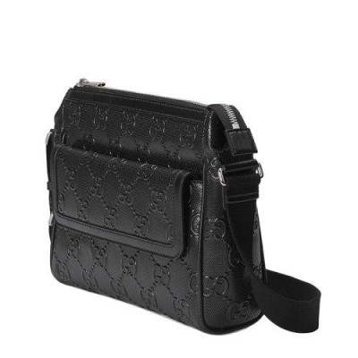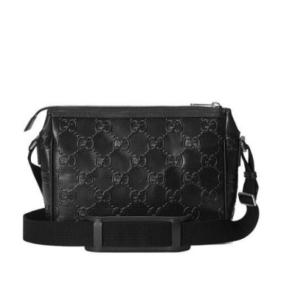 【包稅】GUCCI/古馳21新款GG embossé系列男士黑色雙G壓紋皮革單肩斜挎郵差包6585651W3CN1000