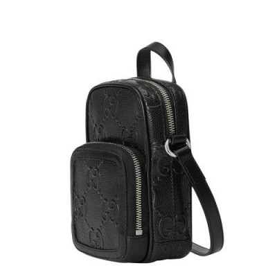 【包税】GUCCI/古驰 21春夏新款GG embossé系列 男女同款迷你黑色双G压纹皮革拉链单肩斜挎手机包6585531W3AN1000
