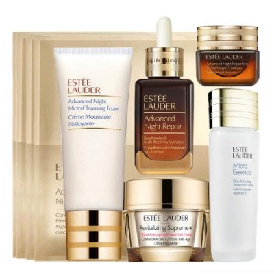 Estee Lauder/雅詩蘭黛抗衰老智妍六件套(原生液75ml+潔面乳100ml+七代小棕瓶50ml+抗藍光15ml+智妍面霜50ml+面膜4P)