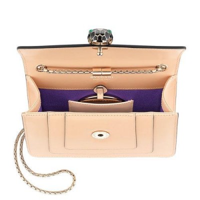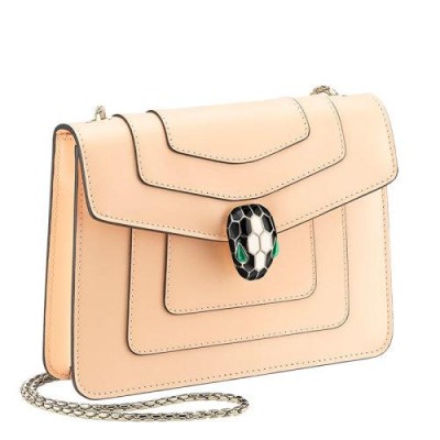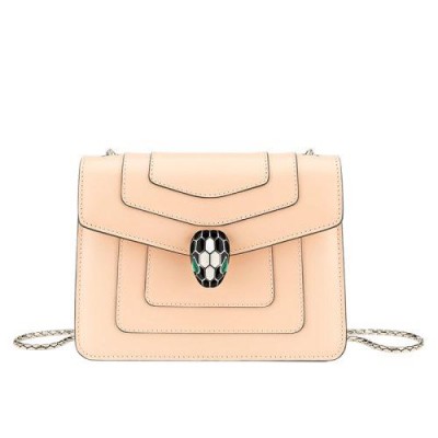 【包稅】BVLGARI/寶格麗2021春夏新款SERPENTI FOREVER系列女士小號桃紅色小牛皮金色黃銅黑色珐琅經典扣單肩斜挎包290466
