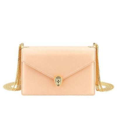 【包稅】BVLGARI/寶格麗21春夏新款SERPENTI FOREVER系列女士桃紅色納帕皮革多鏈式斜挎單肩包290537