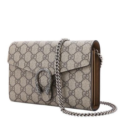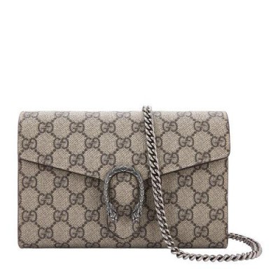 現貨秒發【倪妮同款】GUCCI/古馳Dionysus系列聚氯乙烯卡其色經典logo老花人造帆布鏈條包酒神包401231KHNSN
