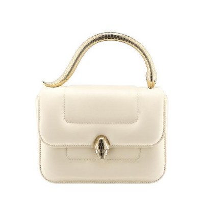 【包税】预售一个月 BVLGARI/宝格丽  MARY KATRANTZOU联名灵蛇蜕变 女士白色柔软纳帕皮Serpenti金色黄铜表扣水晶蛇头单肩斜挎手提包291074