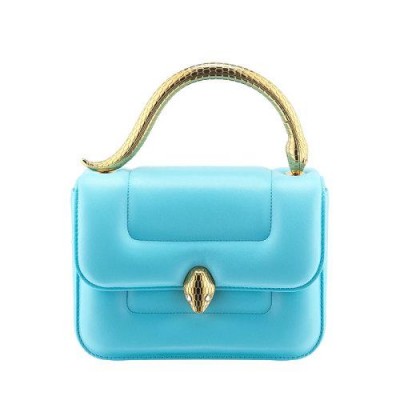 【包税】预售一个月 BVLGARI/宝格丽 MARY KATRANTZOU联名灵蛇蜕变 女士蓝色柔软纳帕皮Serpenti金色黄铜表扣水晶蛇头单肩斜挎手提包291070