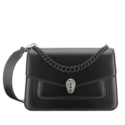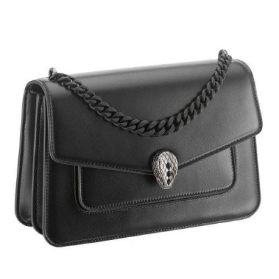 【包税】BVLGARI/宝格丽  SERPENTI FOREVER系列 女士黑色长款纳帕皮革长链单肩斜挎手提包290872
