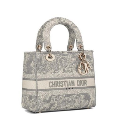 【包税】DIOR/迪奥 21秋冬新款LADY D-LITE系列 女士中号灰色Toile de Jouy图案反向刺绣单肩斜挎手提戴妃包M0565ORGO_M932