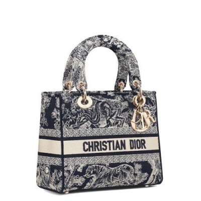 【包税】DIOR/迪奥 21秋冬新款LADY D-LITE系列 女士中号蓝色Toile de Jouy反向刺绣单肩斜挎手提戴妃包M0565ORGO_M928