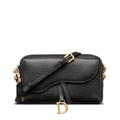 黑色山羊皮迷你手袋采用不对称翻盖和陈年金色金属制成的“ D”字形,代表标志性的Saddle系列标识。此功能性配件可容纳您的日常必需品。可拆卸和可调节的肩带可以用该系列中的刺绣微肩带代替,并且可以戴在肩膀,斜挎包或手上。