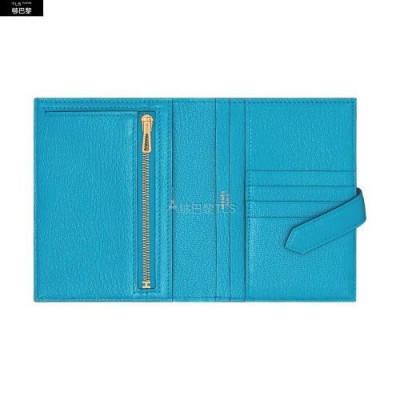 Portefeuille compact en chevre Mysore, ferme par une patte en cuir et un fermoir « H » ajoure plaque ora l'interieur : un porte-monnaie avec fermeture a glissiere, quatre poches cartes de credit et quatre poche*esFabrique en France