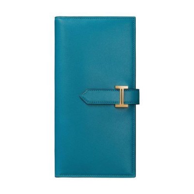 Portefeuille a soufflet en veau Tadelakt, ferme par une patte en cuir et un fermoir « H » en metal plaque orA l'interieur : un porte-monnaie fermeture a glissiere, cinq poches cartes de credit, trois poche*esFabrique en France