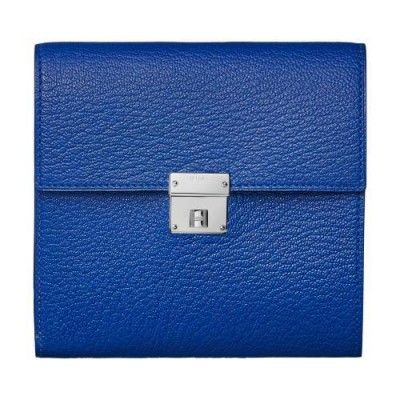 Portefeuille en chevre Mysore, bijouterie argentee palladieea l’interieur : un porte-monnaie avec fermeture a glissiere, cinq poches cartes de credit, une poche carte d’identite, une poche financiereUne ligne aux formats carres qui met en valeur le fermoir inspire des serrures des annees 1960 et de la gravure H raye du cadenas de nos sacs.
