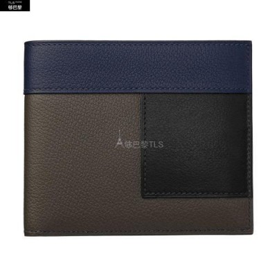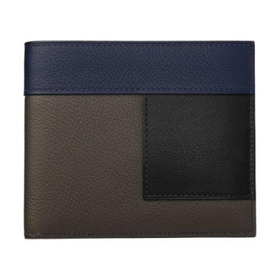 Portefeuille compact en veau Evercolor et veau Evergraina l’interieur : huit poches cartes de credit, deux poche*es et une poche financiereTravail d'applique-pique de plusieurs empiecements de cuir pour former des motifs geometriques inspires des casaques de jockey.