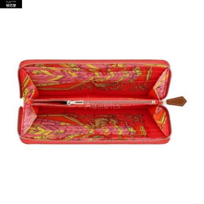 Portefeuille combine en veau Epsom, double en soie imprimee « Astrologie », fermeture a glissiere en metal argente palladie. a l'interieur : une poche monnaie zippee, quatre poche*es et douze poches cartes de credit