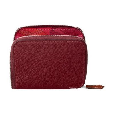 Portefeuille compact zippe en veau Epsom, double en twill de soie imprime « étriers », fermeture a glissiere argentee palladieeA l'interieur : un porte-monnaie zippe, six poches cartes de creditFabrique en France