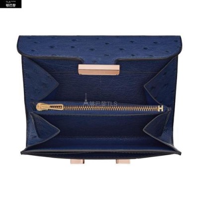 Portefeuille compact en autruche, bijouterie plaquee or rose a l'interieur : un porte-monnaie avec fermeture a glissiere, deux poches cartes de credit et une poche plate a l'exterieur : une poche plate Fabrique en France