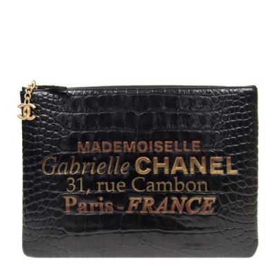 首頁 > 箱包配飾 > 香奈兒 > Chanel/香奈兒20春夏中性黑色仿鱷魚皮金扣手拿包