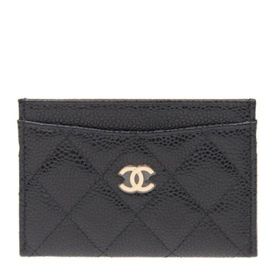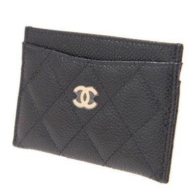 【包税】Chanel/香奈儿 女士经典菱纹黑色牛皮logo标夹层卡包卡片夹