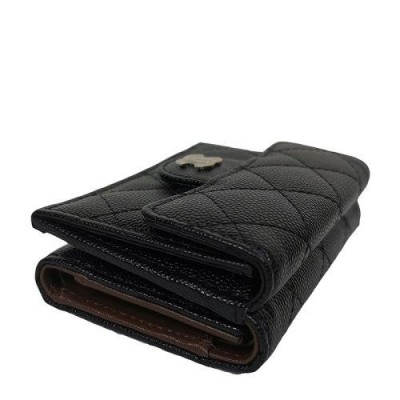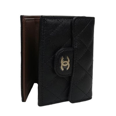 【包稅】CHANEL/香奈兒20經典黑色魚子壓紋小牛皮菱格紋按扣多功能短款錢包
