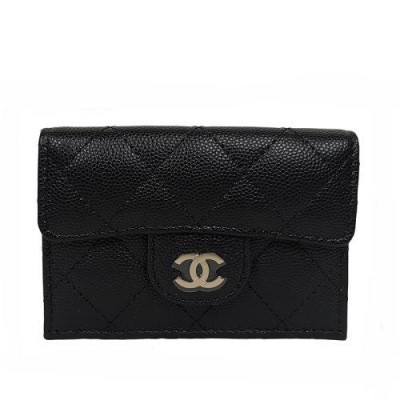 【包税】CHANEL/香奈儿 20 经典黑色鱼子压纹小牛皮菱格纹按扣多功能短款钱包