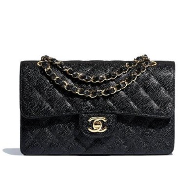 【包稅】預訂款2-3周發貨CHANEL/香奈兒經典款classique黑色魚子醬小牛皮金扣鏈條黑金單肩包A01112Y01864C3906