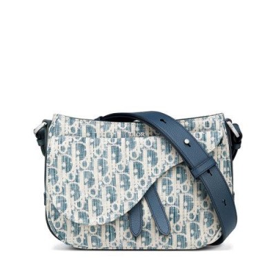 【包稅】DIOR/迪奧2021春夏新款SADDLE SOFT系列男士迷你藍色斜紋Kasuri提花帆布拉鍊開合可拆卸手柄單肩斜挎手提包1ADHO024UTK_H00E