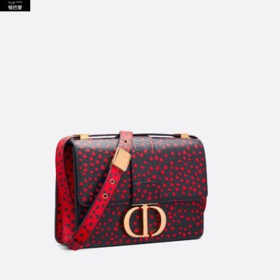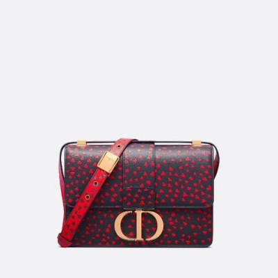 La ligne 30 Montaigne, inspiree de l'adresse emblematique, propose des pieces essentielles qui incarnent les codes iconiques de la Maison. Ce sac a main en cuir de veau presente le motif I Love Paris bleu marine et coeurs rouges texture, tandis que les cotes et la bandouliere proposent un jeu de couleurs inversees. Le rabat est ponctue d'un fermoir CD en metal dore vieilli, inspire d'un flacon de parfum Christian Dior. D'autres details soignes, tels que la signature 30 MONTAIGNE embossee a l'arriere, mettent en valeur ce design epure. Dote d'une bandouliere ajustable en cuir, ce sac 30 Montaigne pourra etre porte a la main, a l'epaule ou en crossbody.