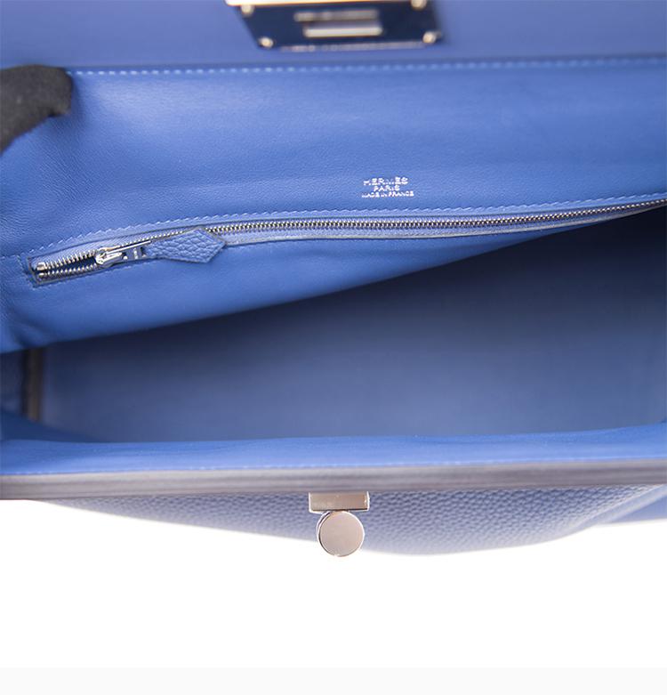HERMES/愛馬仕女士藍色牛皮金屬銀扣手拎包手提包手包女包242435CMAATG