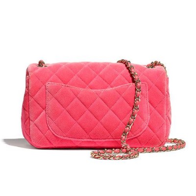 【包邮包税】CHANEL/香奈儿 2020秋季爆款新款 粉色丝绒可调节金链点缀水晶球双C斜挎单肩包