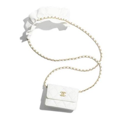 【有微瑕疵】【包稅】CHANEL/香奈兒女包卡包單肩包帶肩花白色