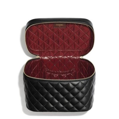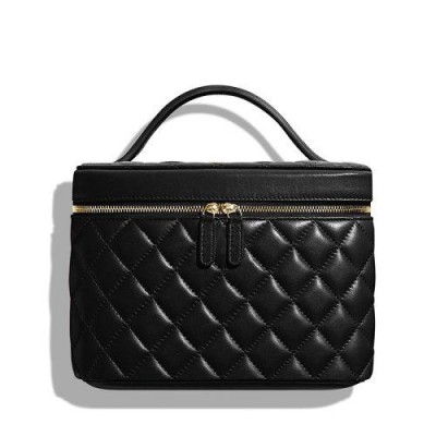 【包税】预售两周 CHANEL/香奈儿 经典款vanity系列 黑色棱纹小羊皮金色金属手提化妆包A80913Y04059C3906