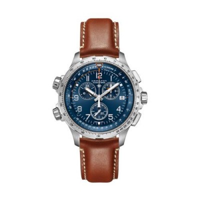 Hamilton/汉米尔顿瑞士手表 卡其航空系列石英男表 46mm蓝盘皮带 H77922541