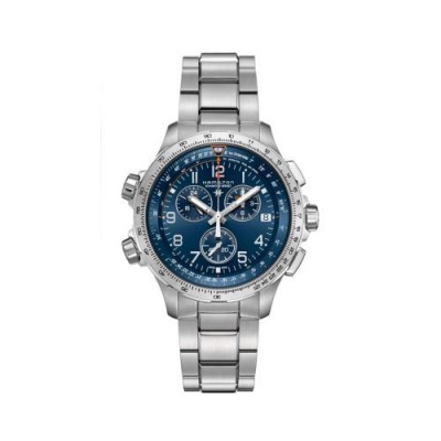 Hamilton/汉米尔顿瑞士手表 卡其航空系列石英男表 46mm蓝盘钢带 H77922141