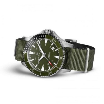 Hamilton/漢密爾頓瑞士手錶卡其海軍Below Zero自動機械潜水男錶40mm軍綠色盤帆布錶帶H82375961
