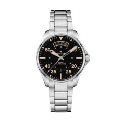 Hamilton/漢密爾頓瑞士手錶卡其航空飛行員系列星際穿越同款自動機械男錶H64645131 42mm黑盤鋼帶