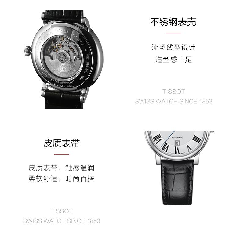 TISSOT/天梭瑞士手表 卡森臻我系列皮带自动机械女士腕表 皮带银盘T122.207.16.033.00