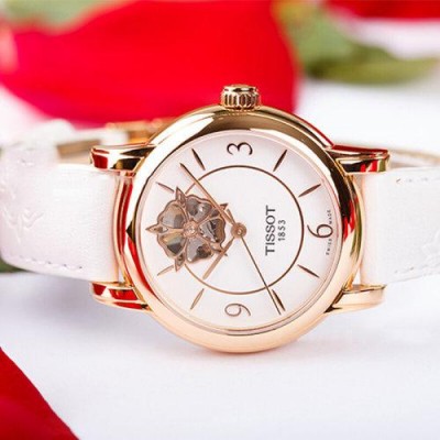 首頁 > 腕表 > 天梭 > 【正品盒裝】TISSOT/天梭心媛系列白盤鍍鏤空數位與條丁刻度白皮帶機械女錶T050.207.37.017.04