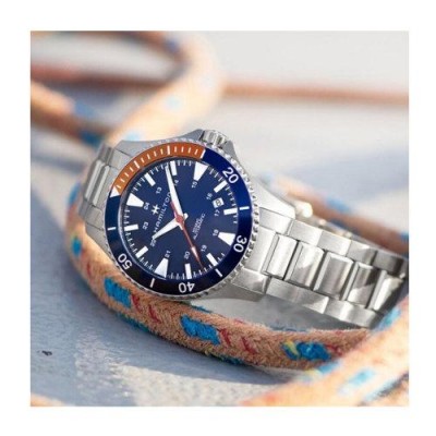 Hamilton/汉米尔顿瑞士手表 卡其海军Below Zero 自动机械 潜水表男表腕表 40mm蓝盘钢带 H82365141