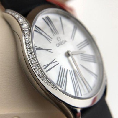OMEGA/欧米茄瑞士手表 碟飞系列镶钻石英女士腕表 皮带白盘428.17.36.60.05.001