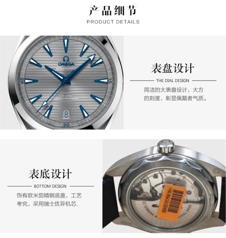 OMEGA/欧米茄瑞士手表 海马系列日历自动机械男士腕表 皮带灰盘220.13.41.21.06.001